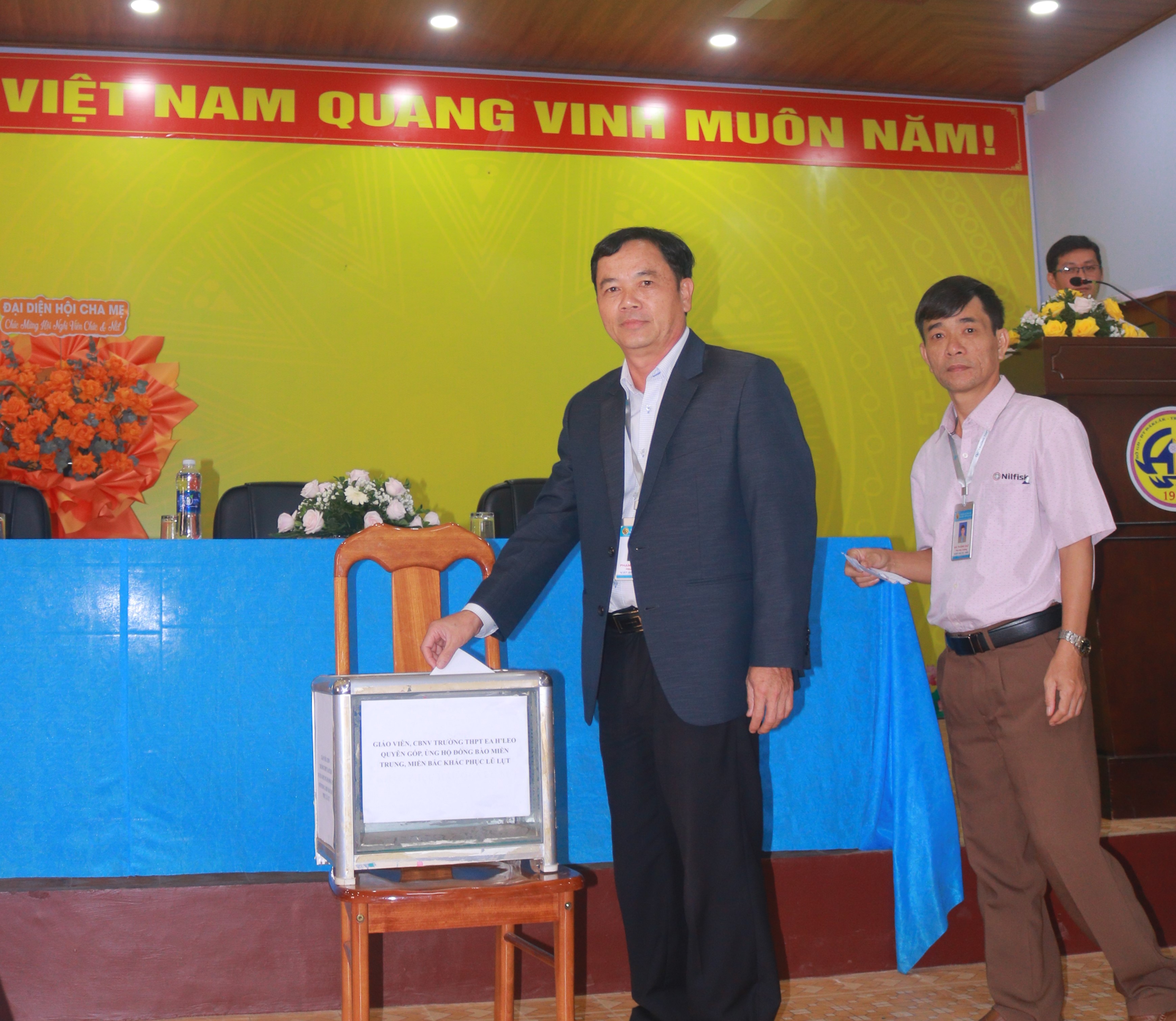 Trước khi Hội nghị bắt đầu, toàn thể cán bộ – giáo viên – nhân viên cùng tham gia quyên góp cho đồng bào miền Bắc, miền Trung bị thiệt hại do mưa lũ vừa qua.